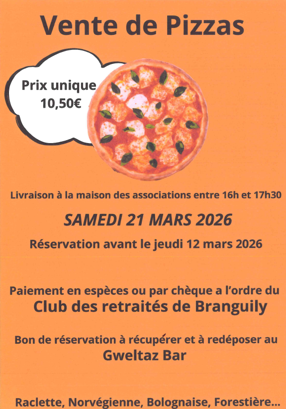 Vente de pizzas à emporter organisé par le club des retraités de Branguily